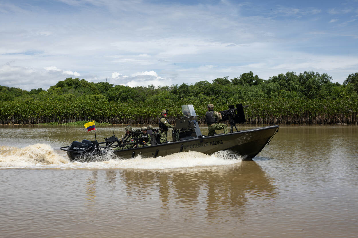De Colombiaanse marine heeft een relatief kleine vloot, kleiner dan de Nederlandse. Het aantal mariniers is daarentegen fors; zij vormen met ruim 20.000 man de bulk van het personeelsbestand. De belangrijkste basis ligt aan de noordkust, in de plaats Coveñas. De Infanteria de Marina heeft enkele bases aan de noordkust (Caribische Zee) en de westkust (Pacific). Maar de meeste bases liggen langs de vele rivieren en binnenwateren van het tropische land. Aan Estribo deden ongeveer 40 Colombiaanse mariniers en instructeurs mee.