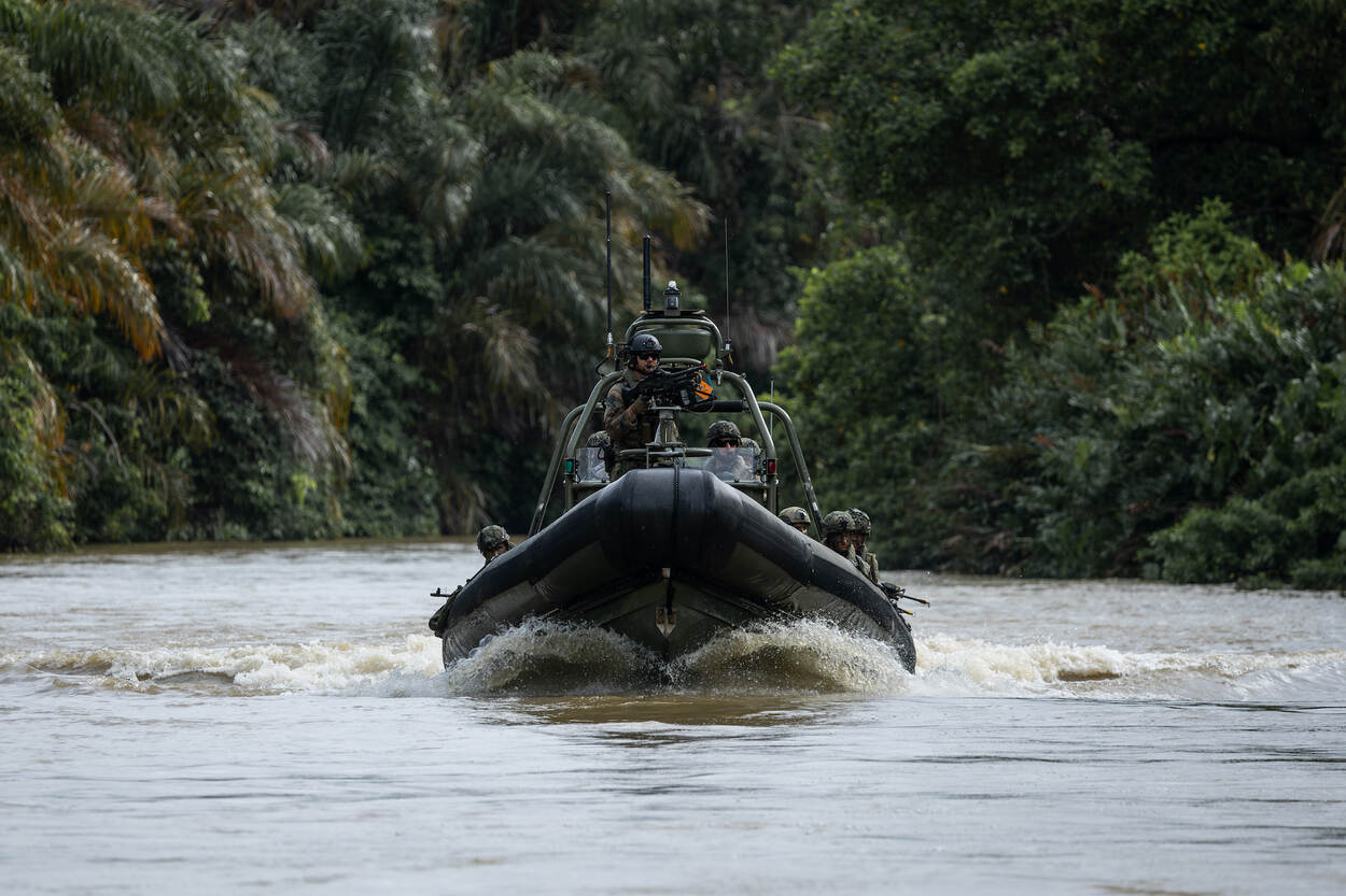 Dit was zomaar een actie tijdens de oefening Estribo, Spaans voor ‘stijgbeugel’, die de afgelopen 3 weken in het noorden van Colombia plaatsvond. Voor het eerst trainden Nederlandse mariniers en hun Colombiaanse collega’s het rivieroptreden in de jungle en amfibische operaties. De actie begon met een amfibische actie vanaf het ondersteuningsvaartuig Zr.Ms. Pelikaan, dat de hele oefening actief meedeed.