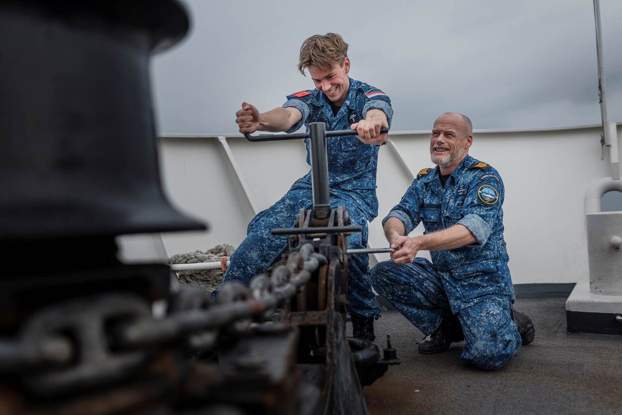 Voor ‘lang-modeller’ adelborst Arne (22) is het de tweede keer (van in totaal 4 periodes) aan boord. Tijdens de eerste zeeperiode, begin dit jaar, was alles nog nieuw; schoonschippen en leren balans te zoeken tussen de zeewacht, de voorbereiding daarop en de rustperioden. “Ik hoef nu minder op te zoeken, dus ben ik aan voorbereiding minder tijd kwijt.”