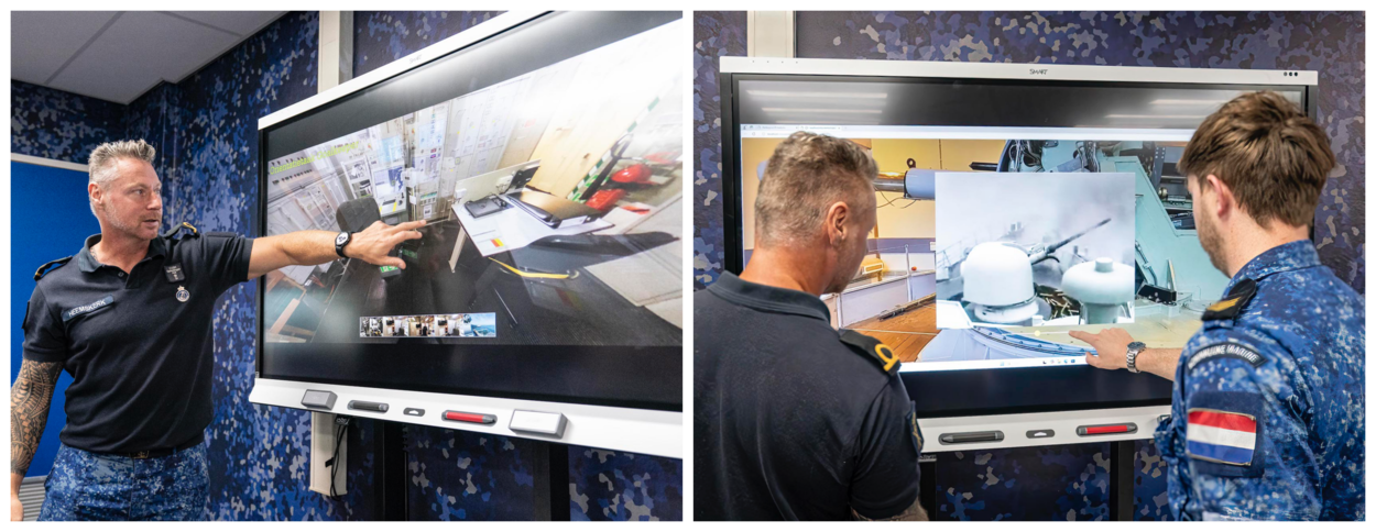 “Er zijn nu slechts 5 programma’s waarin cursisten kunnen werken, maar dat moeten er natuurlijk veel meer worden”, zegt Heemskerk. Nu kunnen technici in opleiding rondlopen op een Luchtverdedigings- en Commandofregat of via een 360-graden foto kennismaken met het Goalkeeper-snelvuurkanon. Ook kunnen ze een torpedoherlaad-drill oefenen, kennismaken met een snelle FRISC en oefenen op een landingsvaartuig van de mariniers. Er bestaat verder een virtuele versie van het Combat Support Ship Den Helder. Al is nu nog onduidelijk in hoeverre die laatste in het lokaal kan worden gebruikt. Eerst moeten beveiligingsexperts bepalen wat precies geheim moet blijven en wat niet.