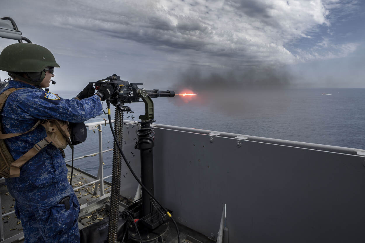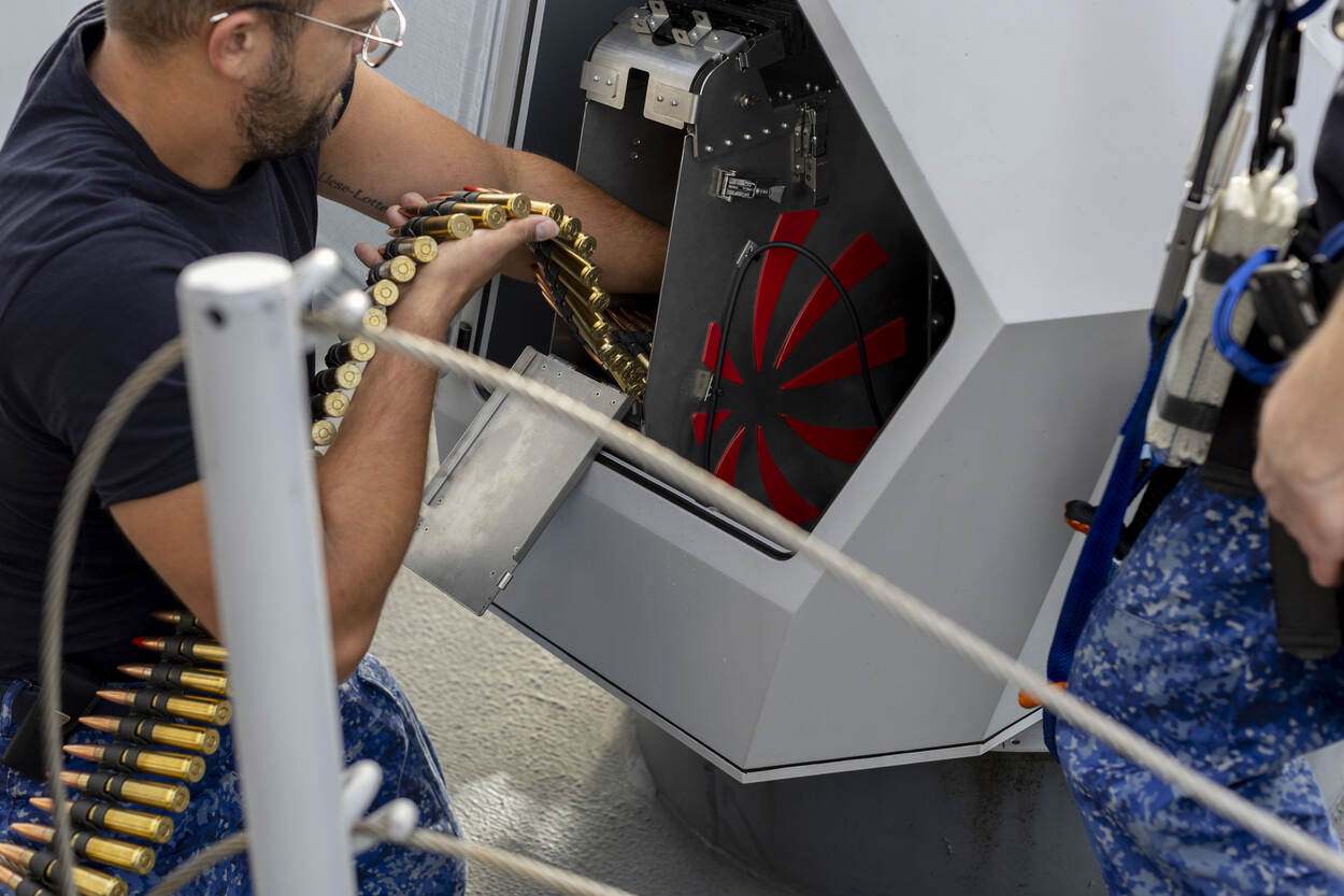 Een andere tak van sport die tijdens REPMUS aandacht krijgt, is hoe een schip zich kan beschermen tegen drones. Een ultieme remedie is er volgens Wouter nog niet, hoewel er wel naarstig wordt gezocht naar wapens die niet alleen effectief zijn, maar ook economisch in gebruik. “De ultieme verdediging is in ieder geval niet met een miljoenen kostende raket schieten op een drone van 5.000 euro, zoals nu nog weleens gebeurt”, slaat hij de spijker op de kop.