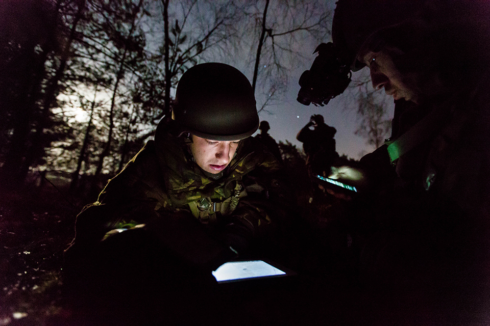 Een militair van de Koninklijke Marechaussee stuurt zijn auto over het asfalt van Schiphol. De marechaussee oefende onlangs de aankomst en het vervoer van hoogwaardigheidsbekleders op de nationale luchthaven. De oefening stond in het teken van de Nuclear Security Summit 2014, in maart in Den Haag. Daar treffen regeringsleiders vanuit de hele wereld elkaar. De marechaussee heeft een belangrijke rol in de beveiliging rondom de top. Ook vele andere eenheden van Defensie helpen mee.