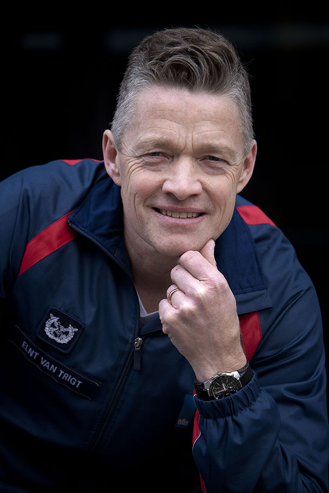 Met zijn frisse blik en afgetrainde lichaam maakt de 51-jarige landmachter zestien jaar na zijn laatste triatlon nog steeds een topfitte indruk. Hij sport veel en combineert daarbij het nuttige met het aangename. Zo fietst hij twee keer per week tachtig kilometer woon-werkverkeer. Weer of geen weer. Van Trigt: “Ik ben liever sportief bezig dan dat ik ga klaverjassen en bierdrinken.”