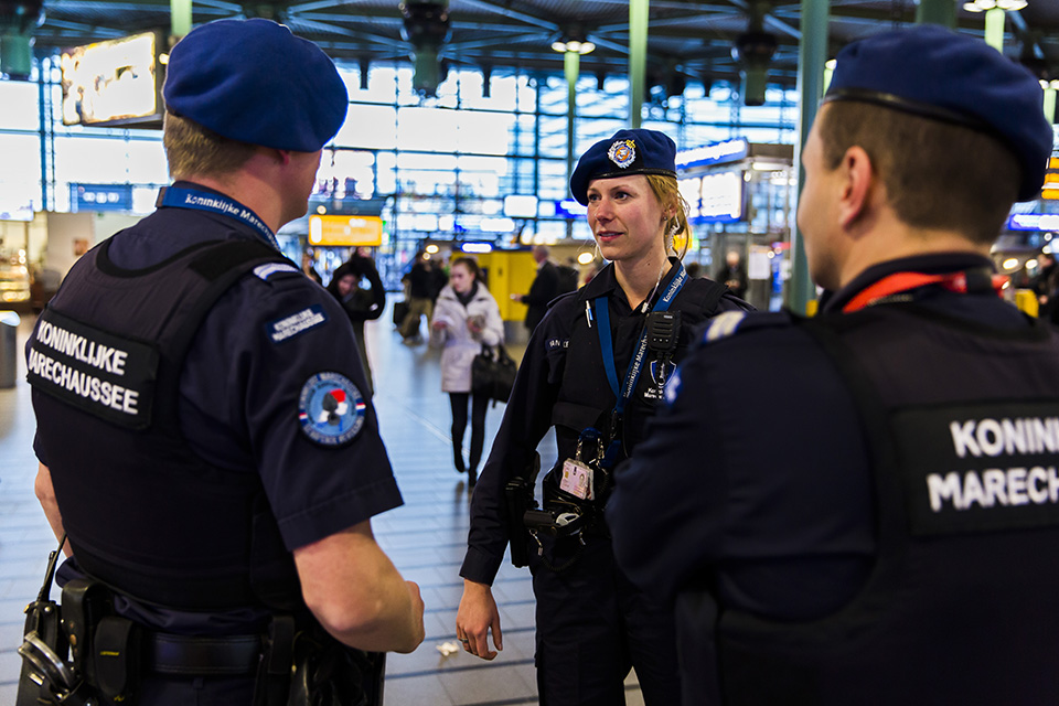 “Ik ben verantwoordelijk voor een team dat de gewapende beveiliging verzorgt op Schiphol. In het kort zorgen wij ervoor dat alle mensen op de luchthaven veilig zijn. Bovendien verzorgen we de beveiliging bij risicovluchten . En we begeleiden zowel positieve als negatieve VIP’s op de luchthaven. Ik ben het aanspreekpunt voor de luchthaven, andere marechausseebrigades en overige partners. Als teamleider zorg ik voor de aansturing van mijn team. En ik praat veel met mijn teamleden. Zo probeer ik continu te werken aan de doorontwikkeling van elk individu en van ons team.”