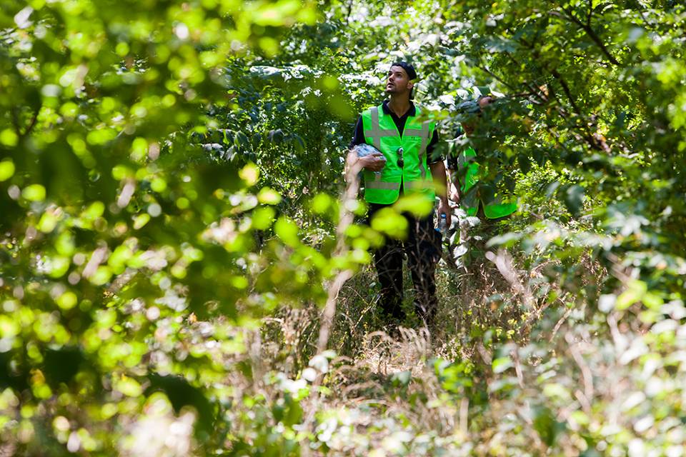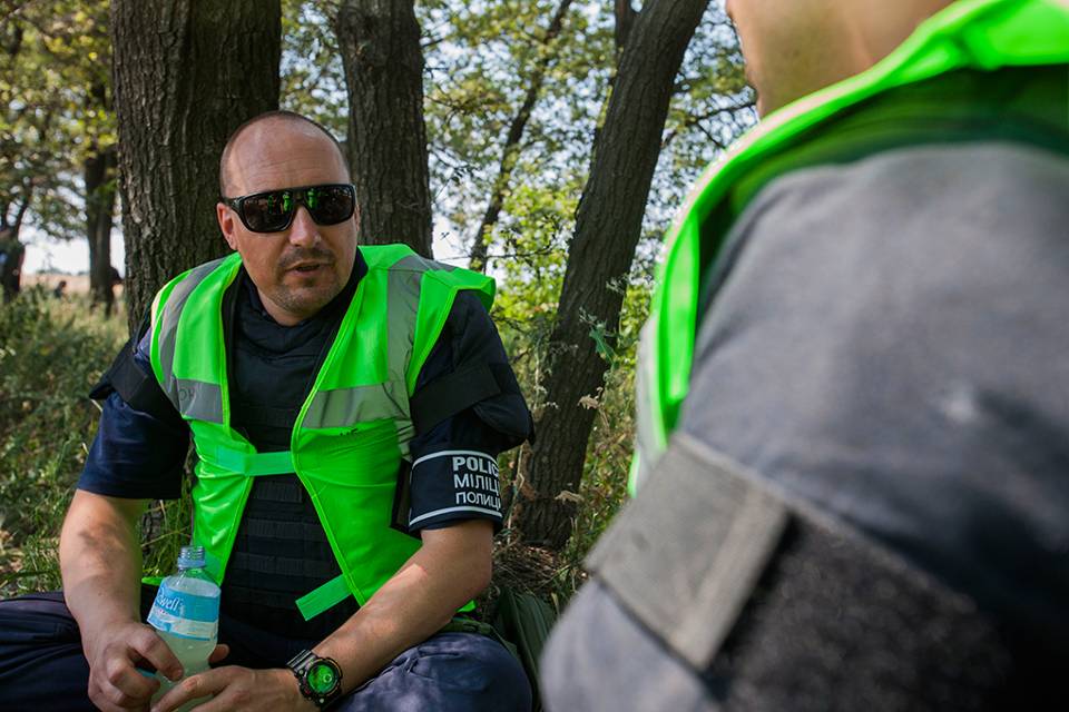 In de brandende zon kilometers weiland afzoeken, is voor de missieleden een helse opgaaf. De militaire dokter die dagelijks met het konvooi meereist, had ze vanmorgen al voorbereid. “Smeer je goed in met zonnebrand. Blijf eten en drinken, anders droog je geheid uit.” Forensisch onderzoeker bij de politie Peter van Engelshoven kan niet anders dan de arts gelijk geven. Zweet druipt van zijn voorhoofd als hij tussen 2 slokken water door vertelt dat de hitte hem aardig parten speelt: “Het is bijna 40 graden. En dan heb je ook nog die volle rugzak op je schouders met een medische kit, eten en vele liters water. Je bent onderweg ten slotte op jezelf aangewezen. Schaduw opzoeken, is geen optie. We moeten door.”