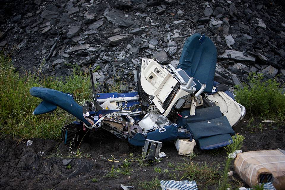 De onderzoekers vinden naast veel wrakstukken ook stoffelijke resten. Op een steenworp afstand van een boerderij ligt een geplette vliegtuigstoel op zijn kant. Iemand vindt een deur van het vliegtuig van Malaysia Airlines. Een kleurboek, foto’s, babyluiers, knuffeltjes; stille getuigen van het verschrikkelijke drama.