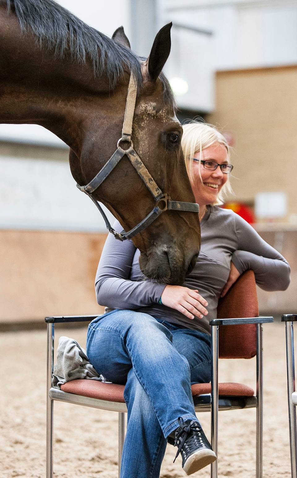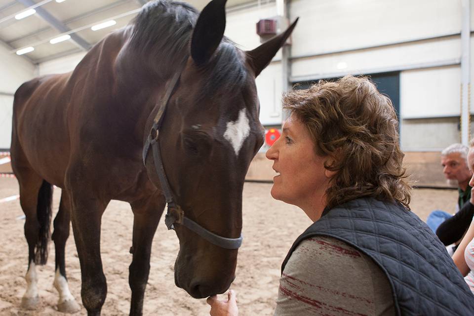 “Een paard liegt niet”, vertelt Tromp Meesters. “Wil je een pure en eerlijke respons op jouw manier van leidinggeven dan krijg je die van een paard.” Instructrice Kalkman demonstreert als een ware amazone hoe Claudio met 1 vinger te sturen is. De groep kijkt geïnteresseerd toe als ze laat zien wat de invloed van houding is op het gedrag van het dier. Ze geeft de leiders nog wat tips mee: “Werken met een paard is een feest van herkenning. Het dier legt je sterke en je zwakke punten bloot. Wat heb je nodig? Hoe bereik je meer?” Psychologe Tromp Meesters vult haar aan. “Door jezelf beter te leren kennen, kun je een betere leidinggevende worden.”