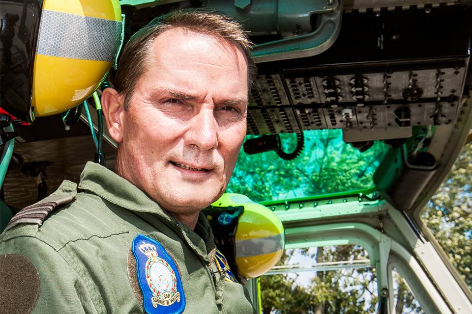 Majoor Ed van Scherpenzeel (49) uit Leeuwarden, commandant 303 Search & Rescue (SAR) Squadron van de Koninklijke Luchtmacht. Hij stuurt zo’n 40 man aan: van vliegers en redders tot hoist operators (bedieners van de lier aan boord –red.) en technisch en ander ondersteunend personeel.