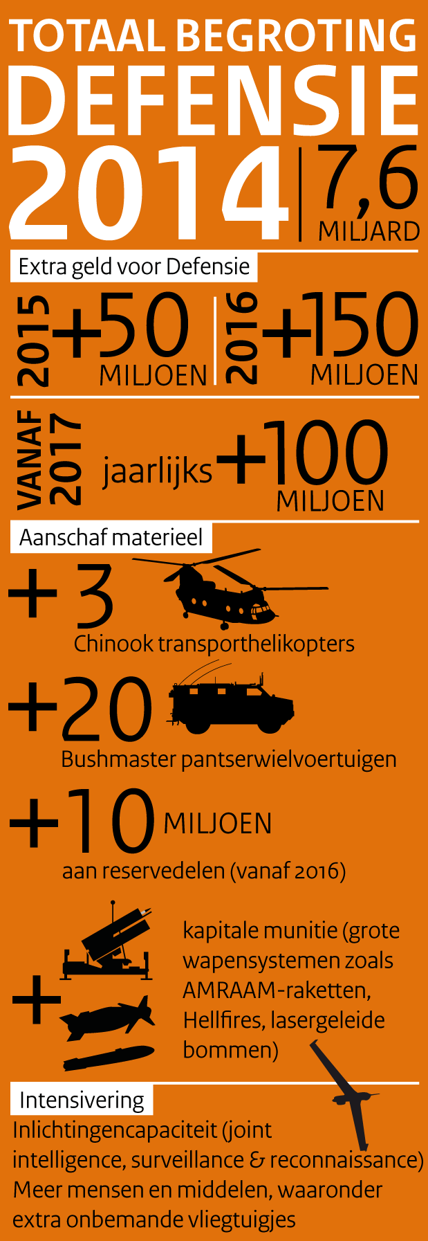 Een trendbreuk: Defensie krijgt er de komende jaren geld bij. “Eindelijk”, verzucht menig militair. De krijgsmacht verdeelt dat extra geld om de inzetbaarheid en haar voortzettingsvermogen te vergroten. Beter en langer vechten voor vrede en veiligheid dus, in het belang van Nederland.