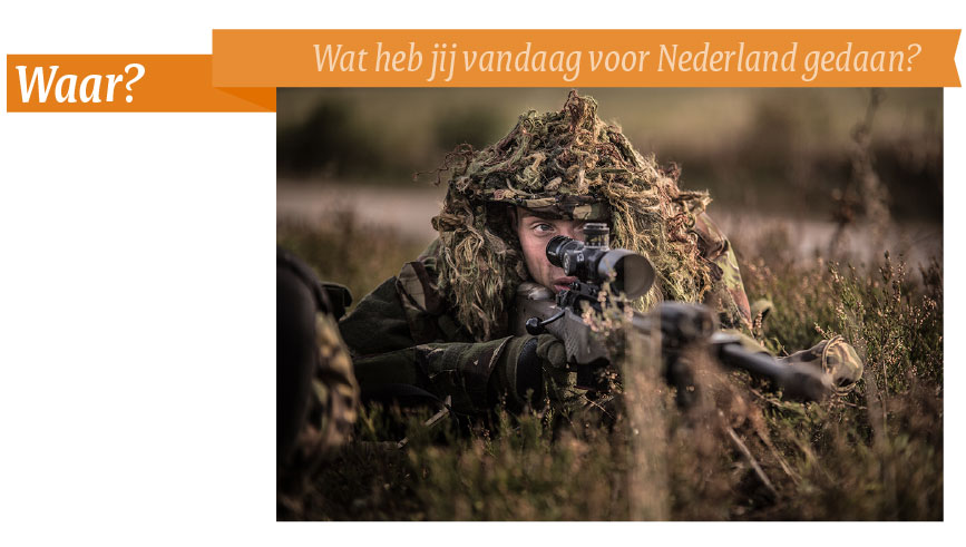 In deze rubriek vertelt tweewekelijks een militair of burgermedewerker van Defensie aan de hand van vier korte deelvragen over zijn of haar taak. En geeft antwoord op de vraag: wat heb jij vandaag voor Nederland gedaan?