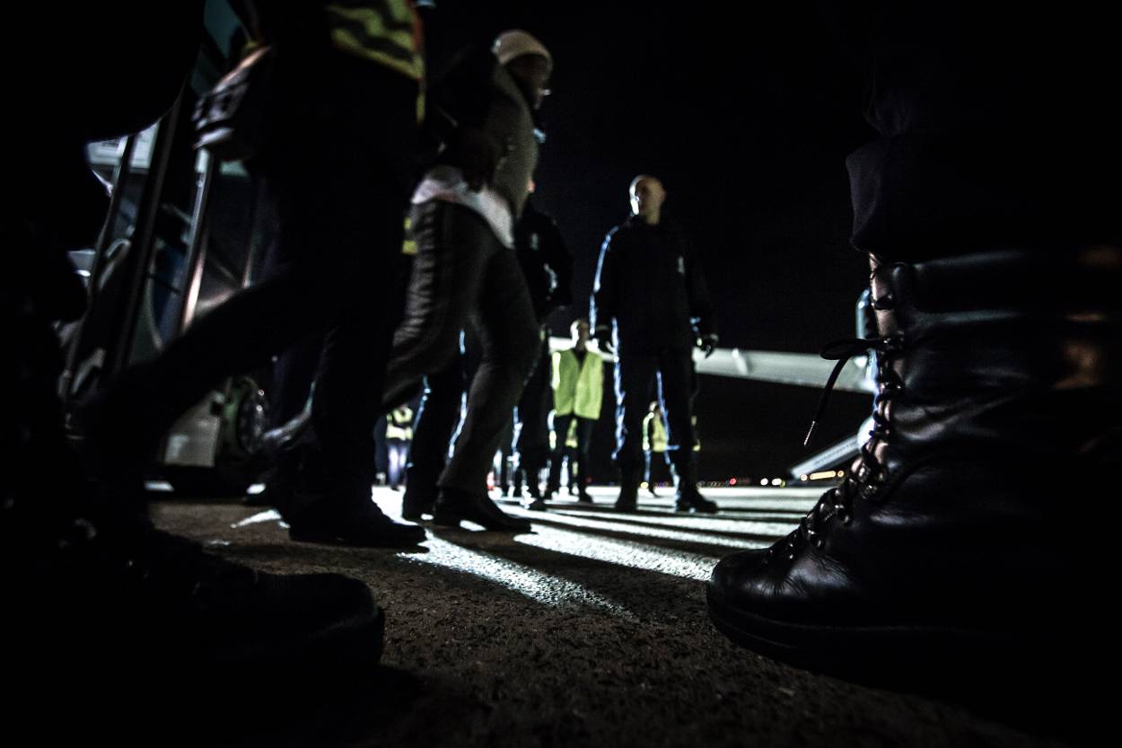 Half zes in de ochtend. Lagos, Nigeria. De Nigeriaanse immigratiedienst komt aan boord. “Finland. Give me Finland please”, roept een gezette officier. De escorteleiders van de Europese landen brengen de Nigerianen 1 voor 1 naar voren. In een rood-geel-groen trainingspak schuifelt een man met een grijs sikje langs de stoelen. Daarna volgt de jongeman met het Amsterdam-petje. Hun landgenoten controleren de persoonsgegevens, daarna mogen ze de vliegtuigtrap af. Terug op eigen bodem.
