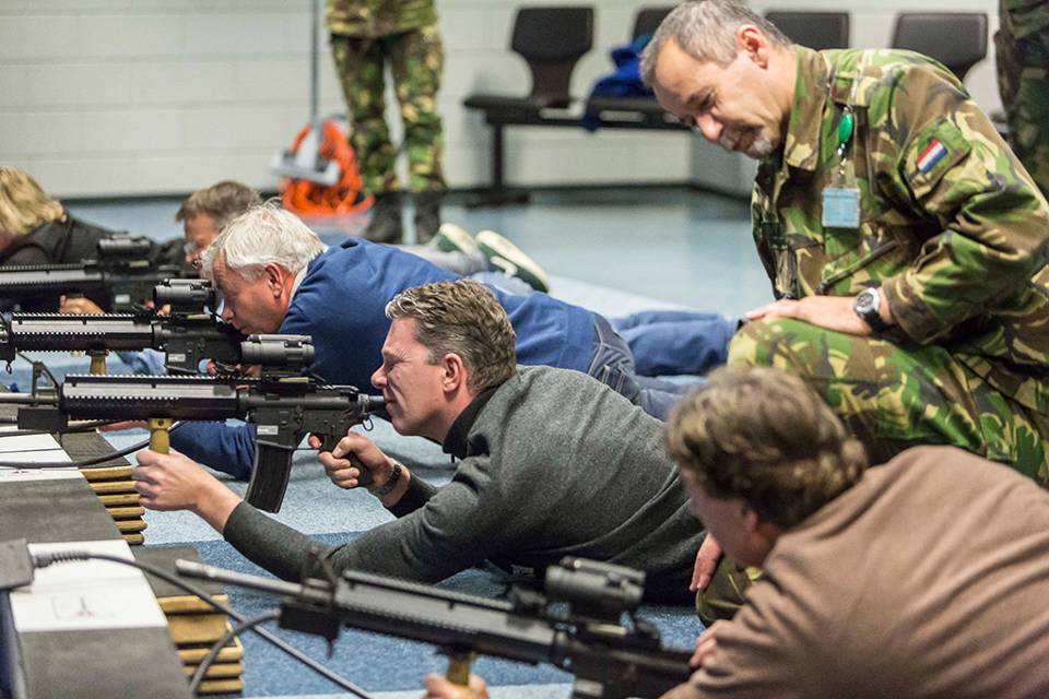 Toegeven, Jorrit Bosselaar, HR businesspartner bij Unilever, begon de dag niet geheel onbevooroordeeld. Als ex-lid ‘studentenweerbaarheid’ had het leger al een streepje voor bij hem. Toch heeft de dag hem veel duidelijk gemaakt: “Ik dacht dat de krijgsmacht synoniem was voor ‘stilstaan’ en ‘keurslijf’. Niets is minder waar. De faciliteiten zoals de simulatoren zijn ‘top notch’. Ik had niet gedacht dat Defensie zo vooruitstrevend was. Ik ga het leger binnen mijn bedrijf promoten. Zonder vrede en veiligheid kunnen wij (bedrijfsleven, red.) niet op mondiaal niveau opereren. Ik hoop dat dit soort dagen vaker worden georganiseerd om meer mensen hiervan bewust te maken.”