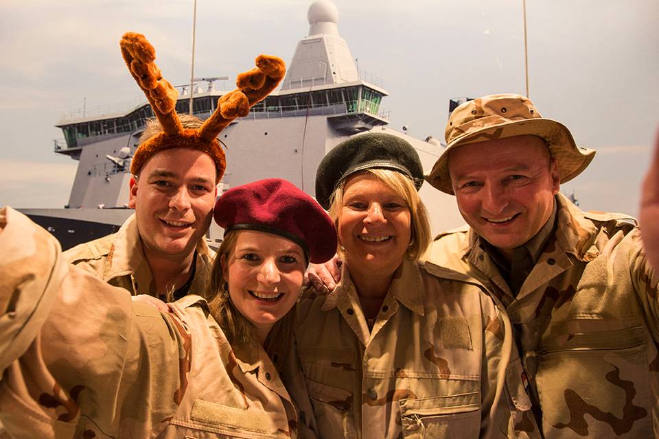 “Mijn man Hermando is hondengeleider en loopt samen met zijn hond Teun de wacht bij de F-16’s die worden ingezet boven Irak. Het is al zijn tweede uitzending dit jaar, want van april tot juli was ‘ie ook al uitgezonden naar Mali. Dat maakt het wel zwaar hoor, twee uitzendingen zo kort achter elkaar. Want ook al ben ik zelf militair op vliegbasis Leeuwarden en valt het daardoor iets gemakkelijker te begrijpen, dan blijft het nog steeds niet leuk om de feestdagen gescheiden te moeten doorbrengen. We hebben wel vaak contact via de Whatsapp, en daaruit begrijp ik dat ze nog altijd in tenten moeten slapen en dat het eten erg eenzijdig is. Dal belooft wat voor het Kerstdiner.”