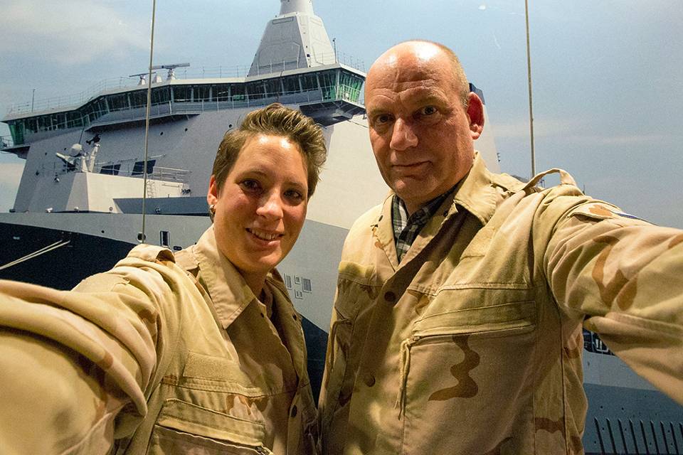 “Mijn aanstaande man Kevin is doorgunner op de Chinook en zit nu bij het heli-detachement in Mali. Half januari komt ‘ie weer thuis, net op tijd om de kerstboom op te ruimen. Ik 2008 was hij ook al met de feestdagen weg, toen met Luchtmobiel in Afghanistan. Het leven van een militair hè. Ach, zo houd je wel je relatie spannend, anders wordt het zo gauw een sleur. Straks als hij weer thuis is, zijn we weer gewoon verliefd. Tot die tijd behelpen we ons met kus-selfies.”