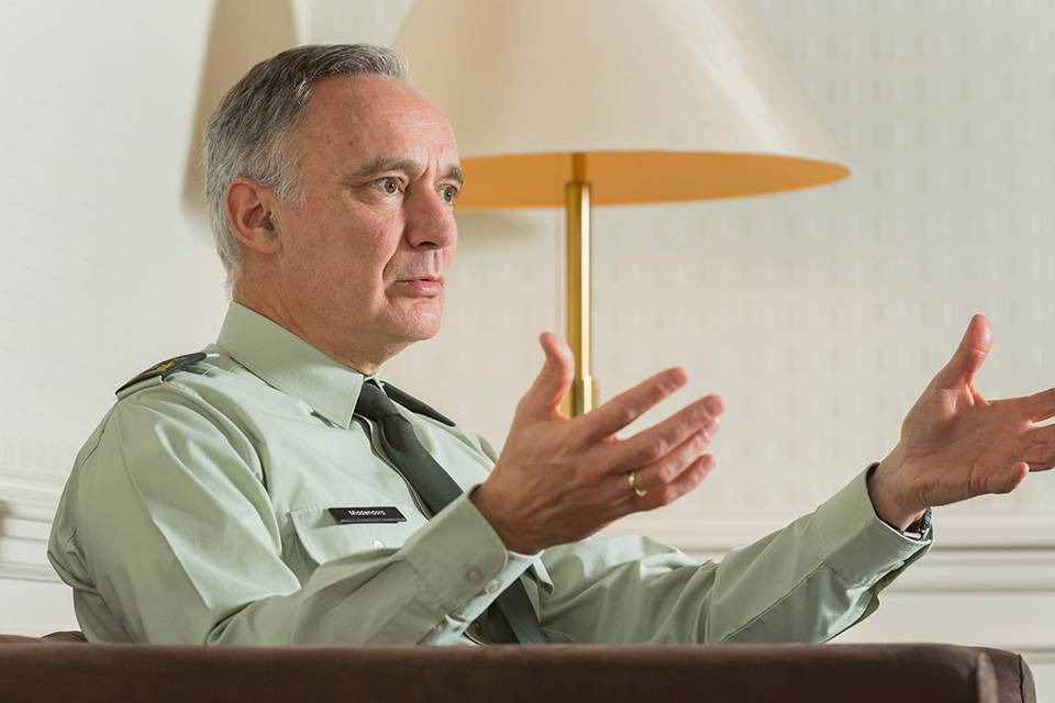 “Het is niet relevant aan hoeveel missies we deelnemen. Het gaat er om welke belangen we namens Nederland willen dienen, wat we doen en waarom. 10 kleine missies kunnen meer effect hebben dan 1 grote. In Mali hebben we bijvoorbeeld bewust gepast voor de rol als lead nation in een provincie, maar hebben we ons gericht op het vergaren van inlichtingen. Dat is een uitermate belangrijke bijdrage in een internationale missie die Nederland belangrijk vindt. Ik ga niet over dat belang. Het is aan mij om de minister te adviseren of we kunnen meedoen aan een missie en hoe. En ik ervaar dat er heel goed wordt geluisterd naar het militair advies.”