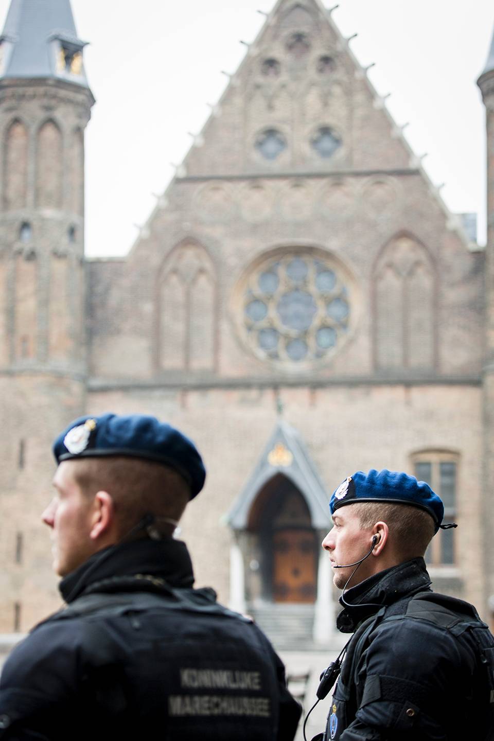De Bijstandseenheid van de Koninklijke Marechaussee bewaakt en beveiligt sinds maandag de Staten-Generaal, enkele ministeries en diverse andere objecten.