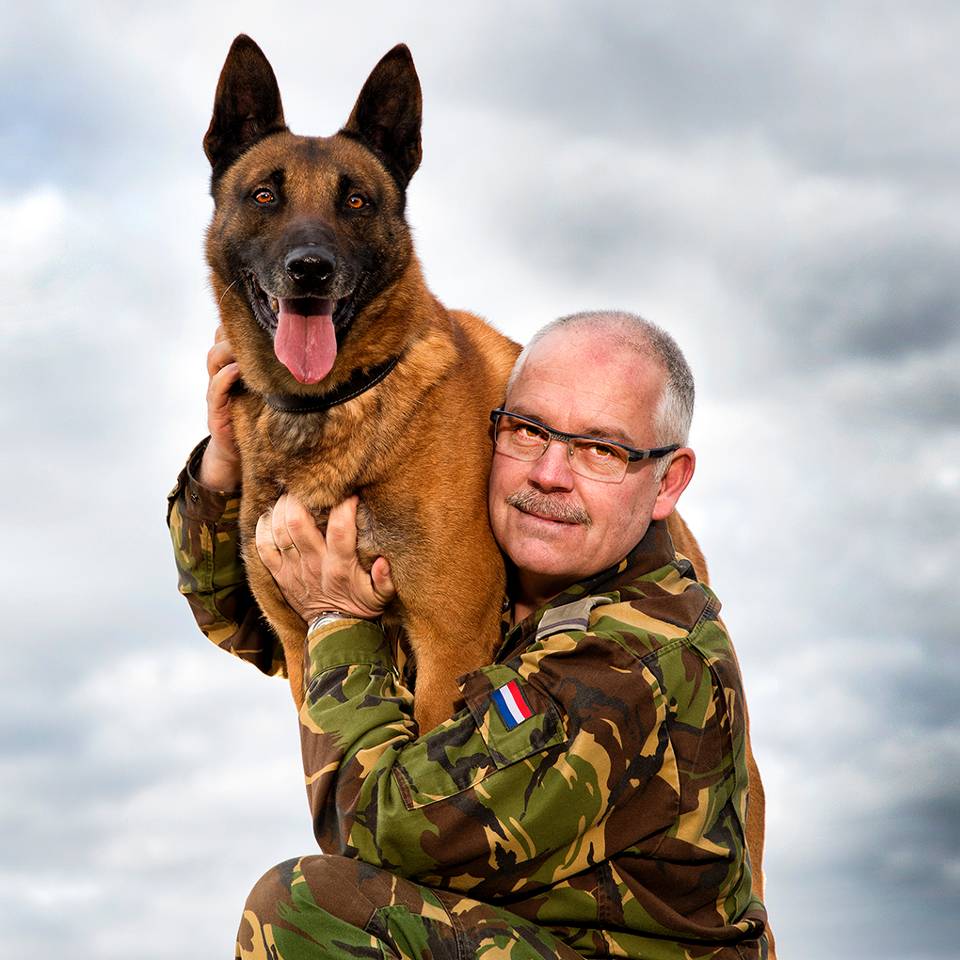 “Op de vliegbases van Defensie houden zo’n 160 honden de boel in de gaten. En net als militairen gaan ze ook op uitzending. Overal waar een F-16 of helikopter naartoe gaat, gaan de honden mee, of dat nu in Mali is of Afghanistan. Zij voorkomen dat mensen met kwade bedoelingen aan de vliegtuigen zitten. Als je militairen zou inzetten voor de bewaking moet je hele pelotons langs de hekken zetten, dat is niet te doen. Honden werken ook beter als afschrikking. Als een hond een verdacht iemand in de smiezen heeft, gaat ‘ie er met 30 kilometer per uur op af en schakelt ‘ie zo’n vent in 1 keer uit. Ik leid ook speurhonden op. Die taak wordt steeds belangrijker. Honden kunnen bijvoorbeeld low metal explosieven opsporen die met metaaldetectoren niet te traceren zijn.
