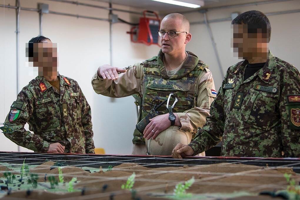 “Nederland levert 10 militaire adviseurs afkomstig van de landmacht en marechaussee. Zij vliegen of rijden vanaf Camp Marmal in Mazar-e-Sharif een paar keer per week naar de omliggende Afghaanse hoofdkwartieren om hun Afghaanse collega's te adviseren. Daarnaast zijn er 10 militairen werkzaam in de staf van TAAC-NORTH (Train Advise Assist Command). Dit is het regionale hoofdkwartier van Resolute Support in Noord-Afghanistan. Op het hoofdkwartier in Kabul werken ook nog 4 Nederlandse adviseurs. Naast de adviseurs zijn er nog zo'n 80 man ondersteunend personeel actief in Mazar-e-Sharif. Denk hierbij bijvoorbeeld aan het Force Protection-peloton en personeel in de Medical Taskforce.”