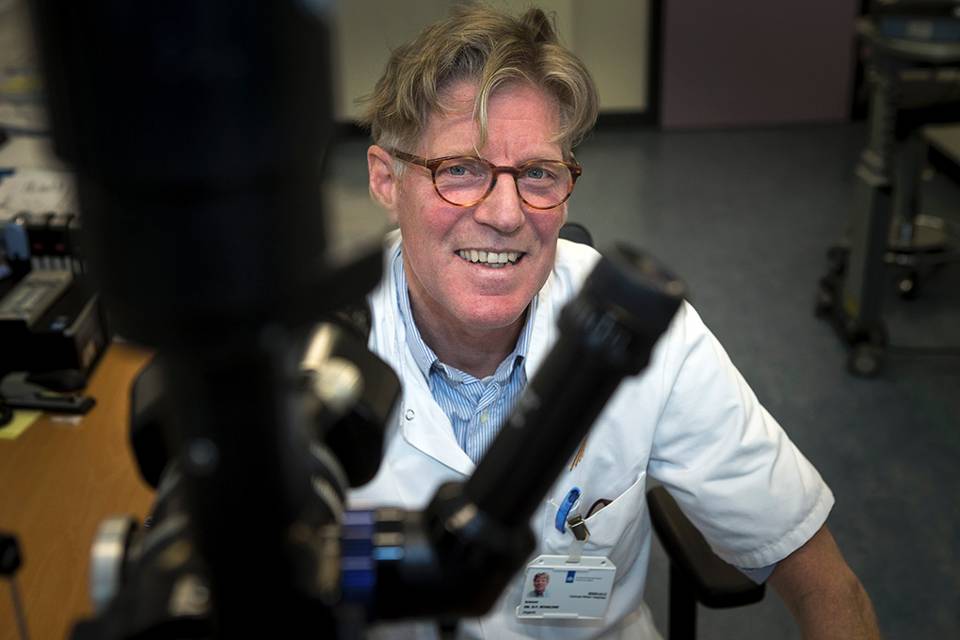 “Ja, nogal”, beaamt de CMH-arts. “Alle operaties doen we met een microscoop die 30 keer vergroot. Dat moet je leren, want kijkend door een microscoop zie je geen diepte. Het vergt veel oefening voordat je je handen kan laten doen wat jij wilt. Daarnaast moet je een ontzettend vaste hand hebben. Toen ik net klaar was met de opleiding ben ik ‘s ochtends vroeg een keer gaan tennissen. Heel onverstandig, je handen trillen lang na. Dat doe ik nooit meer!”