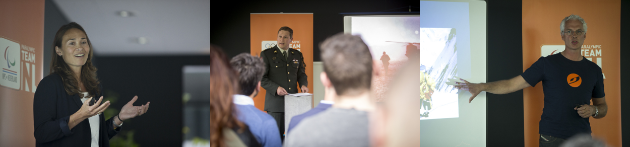 De 3 sprekers kennen hun pappenheimers als het gaat om omgaan met tegenslagen. Zo was Tuinman met zijn collega’s omsingeld door de Taliban, raakte Van Rooijen verschillende malen gewond op steile berghellingen en amputeerden artsen bij Mentel een onderbeen wegens kanker. De gemene deler uit hun verhalen: geef nooit op.