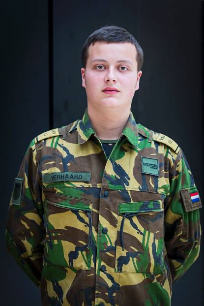 “Door alle bezuinigen bij Defensie twijfelde ik of ik wel aan deze opleiding moest beginnen. Daarom koos ik voor een opleiding binnenhuisarchitect. Leuk, maar niet mijn passie. Defensie vertelde me dat jong personeel altijd nodig is, dus na een jaar stapte ik over naar VeVa. Een goede opleiding met een volwassen benadering, erg fijn. Inmiddels ben ik geslaagd en mag ik over 2 maanden opkomen bij de Koninklijke Militaire School voor de opleiding onderofficier infanterie. Supergaaf en spannend om straks al leiding te mogen geven.”