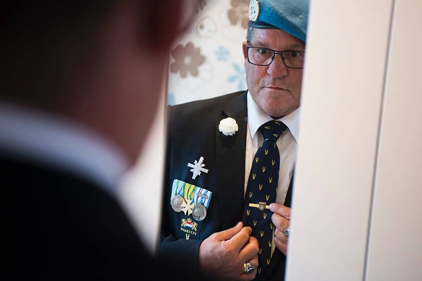 07.30 uur: Voor de spiegel, op weg naar de “dag van erkenning”, Veteranendag 2015.