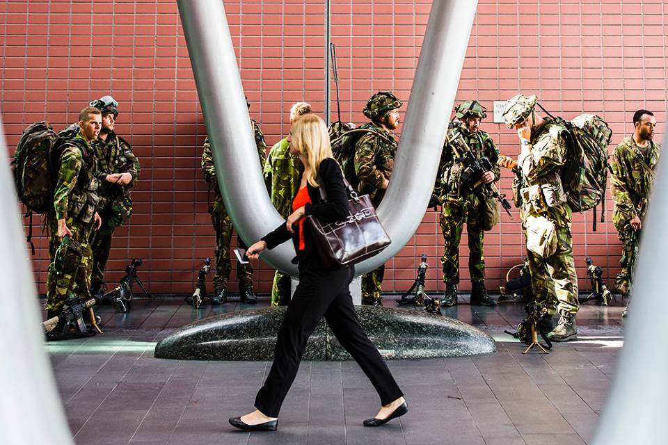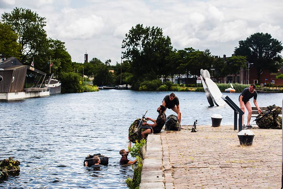 Dat luchtmobiele eenheden steeds vaker in dichtbevolkte gebieden oefenen, heeft te maken met de aard van de huidige conflicten. Van der Hoeven: “Het merendeel van onze missies vindt plaats tussen de burgers. Om die reden hebben we een situatie gekozen die aansluit bij de realiteit.” De militairen trekken veel bekijks op straat. Aan de waterkant staat de 62-jarige Sjan Elissen. Samen met een vriendin kijkt ze aandachtig naar de groep militairen die een wateroversteek voorbereidt. De mannen zijn druk in de weer met het maken van een drijfpakket, zodat al hun spullen droog de overkant bereiken. “Ik ben speciaal na het sporten deze kant opgelopen”, zegt Sjan lachend terwijl de militairen om haar heen zich tot op hun ondergoed uitkleden. “Voor ons is dit leuk om te zien en voor de mannen hopelijk erg nuttig”, vertelt ze. Volgens soldaat-1 Anthony Jackson zijn de reacties van omstanders positief. “Mensen zijn erg aardig. Ze maken gemakkelijk een praatje of stellen vragen. Dat maakt het voor ons ook leuk en soms is het gewoon prettig om te worden aangemoedigd.”