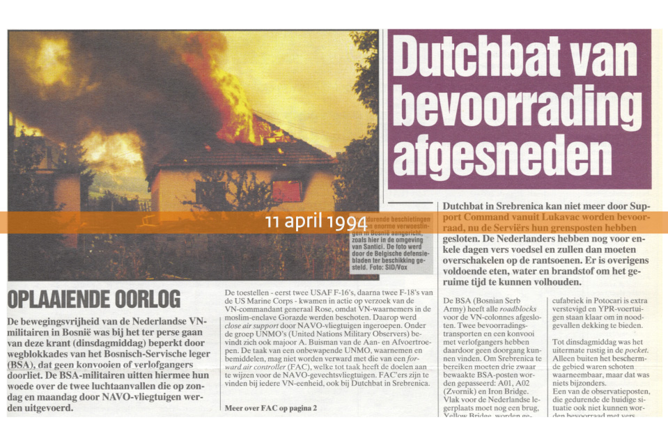 Blokkades, bedreigingen, beschietingen, gijzelingen en uiteindelijk genocide. Dutchbat-3 is al 20 jaar het ‘gebeten bataljon’. Vorige week stond de wereld stil bij de val van de enclave Srebrenica. De Defensiekrant blikt ook terug. Onze redacteuren en fotografen deden 20 jaar geleden geregeld verslag van en vanuit de strijd in het voormalig Joegoslavië.