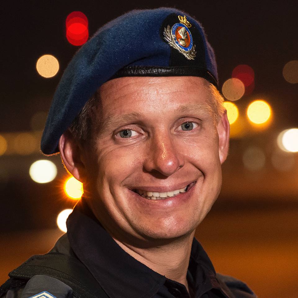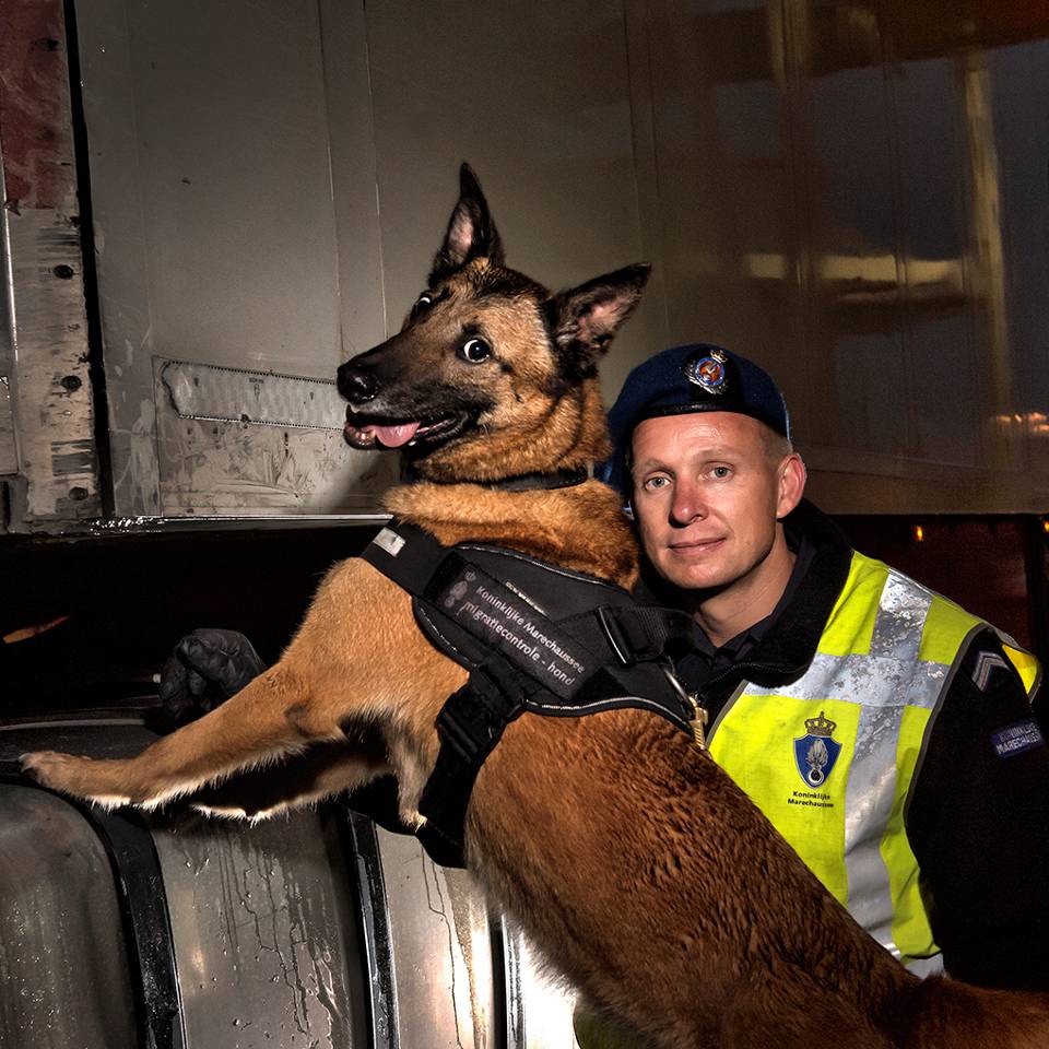 “Mijn jongensdroom is uitgekomen”, zegt hondengeleider wachtmeester-1 Marcel Timmerman (39). Hij is afkomstig uit een bouwvakkersfamilie. Toch is zijn liefde voor werken met honden wel te verklaren. Zijn vader was als hobbyist politiehondendresseur. In zijn tienerjaren nam Marcel deze passie over. Nu is hij speurhondengeleider migratiecontrole bij de marechaussee.