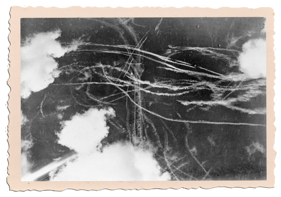 meteen het einde van de Slag om Engeland. De foto toont condenssporen van Britse
