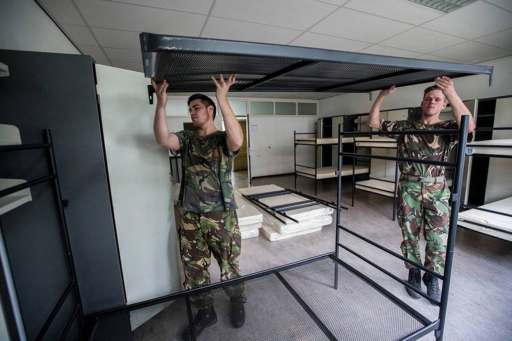 militairen op stel en sprong de voormalige Van Hornekazerne in Weert bewoonbaar