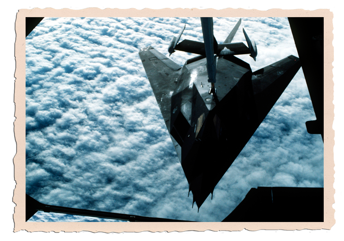 F-117A Stealth bommenwerper te zien, het markante zwarte toestel is een van de