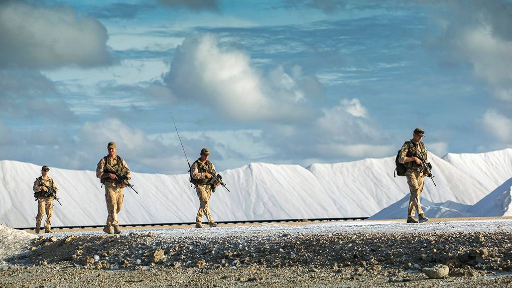 “Iedere infanterist moet deze skills zich eigen maken”, vindt brigadegeneraal Kees Matthijssen. Op de achtergrond gaat het 'beteugelen van woelingen' van start. “In de toekomst treden we steeds meer in verstedelijkt gebied op. Hier leren situaties te de-escaleren, kan straks goed van pas komen.” Waar ooit slaven zwoegden, ploeteren nu genisten over de zoutpannen. Naast een mooi plaatje leveren de militaire inspanningen ook informatie op. Door infrastructuur in kaart te brengen, te testen en metingen uit te voeren, weten de infanteristen onder meer hoeveel gewicht een brug of dam kan dragen. Waardevolle informatie… vooral tijdens een inzet. Het zware terrein vol kliffen, scherpe rotsen en stekelige begroeiing maakt tactisch verplaatsen vrijwel onmogelijk. De meeste operaties vinden dan ook 's nachts plaats. Onder dekking van de duisternis maken de specialisten gebruik van paden en wegen. Via water verplaatsen kan natuurlijk ook. Hoe goed geoefend en uitgevoerd ook, soms vallen er gewonden. Zaak is dan 'slachtoffers' zo goed mogelijk te stabiliseren en snel en veilig te evacueren. Vanuit een oud leegstaand hotel plannen de 'rode baretten' de verschillende oefenoperaties. “Zo luxe liggen we zelden; vrij van wind, geen muggen en een schitterend uitzicht”, aldus compagniescommandant kapitein Rob Morsink.