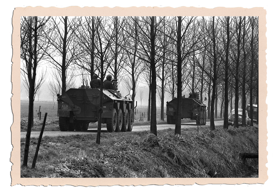 29 januari 1973 – Twee pantserwagens van het regiment Van Heutsz worden ingeroepen om de gijzelnemers te ontmoedigen. (Bron: Nationaal Archief)