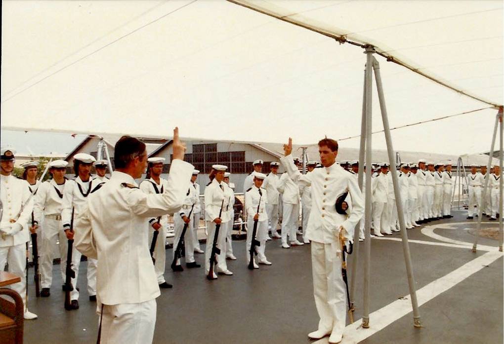 Begin jaren ’80, toen ik van het VWO kwam, waren er wel 100 beroepen die ik leuk vond. Ik kon niet kiezen. Aangezien ik toch in dienst moest, werd Defensie een aantrekkelijk alternatief. Dat het de Koninklijke Marine moest worden, was voor mij daarbij wel een uitgemaakte zaak. Het teamwerk, het opleidingsniveau, de kans om op jonge leeftijd al veel verantwoordelijkheid te krijgen, het buitenlands avontuur en de ‘laat-maar-zien-wat-je-kunt-mentaliteit’ spraken me erg aan.