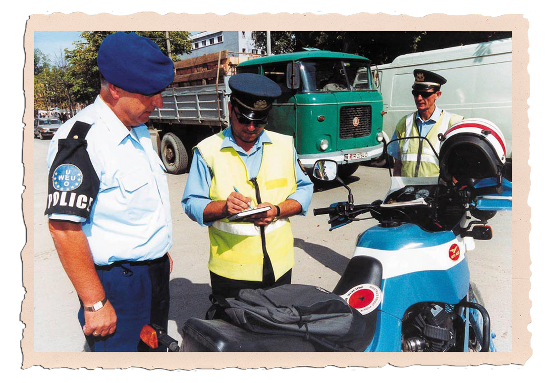 Als de halve Albanese bevolking haar complete kapitaal verliest in de overgang van communisme naar kapitalisme, overspoelen chaos en anarchie het land. Om de jonge regering te helpen orde te scheppen, besluit de West-Europese Unie op 2 mei 1997 het Multinational Advisory Police Element (MAPE) op te richten. De MAPE adviseert de overheid, traint politieagenten en houdt toezicht op het politieapparaat. Nederland levert tussen 1997 en 2001 33 marechaussees. In augustus 2002 eindigt de Europese steun.