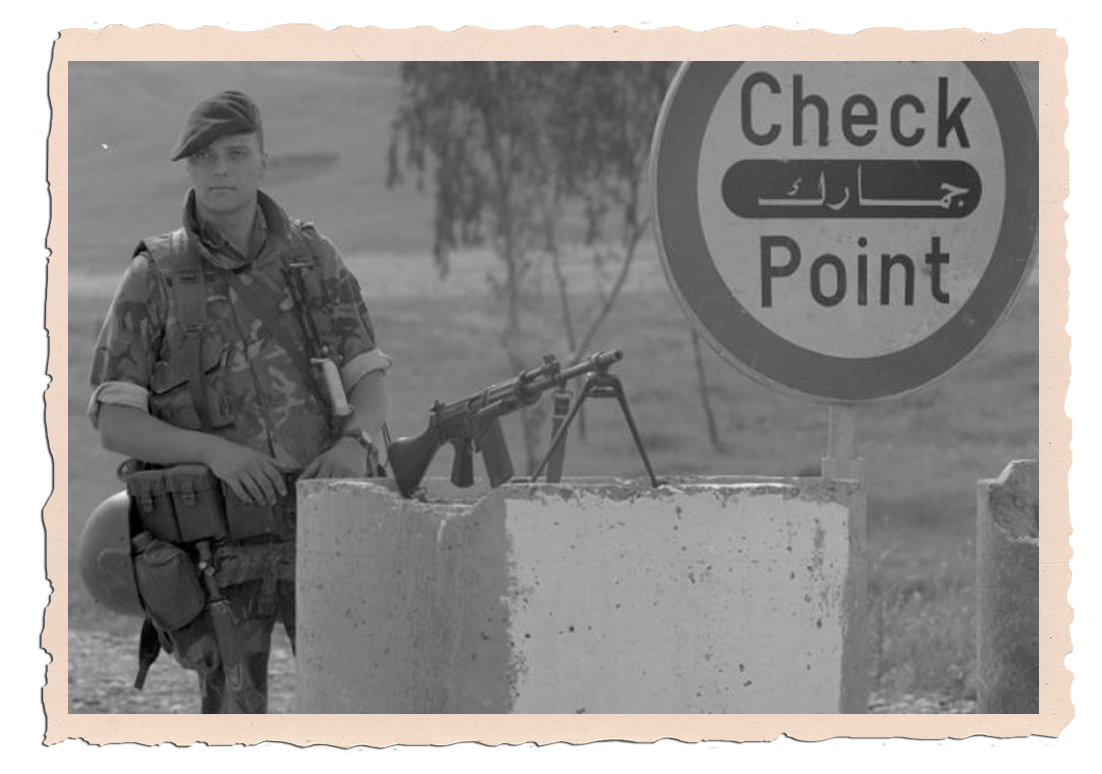 Een marinier beveiligt in 1991 de safe haven. Bron: Nederlands Instituut voor Militaire Historie