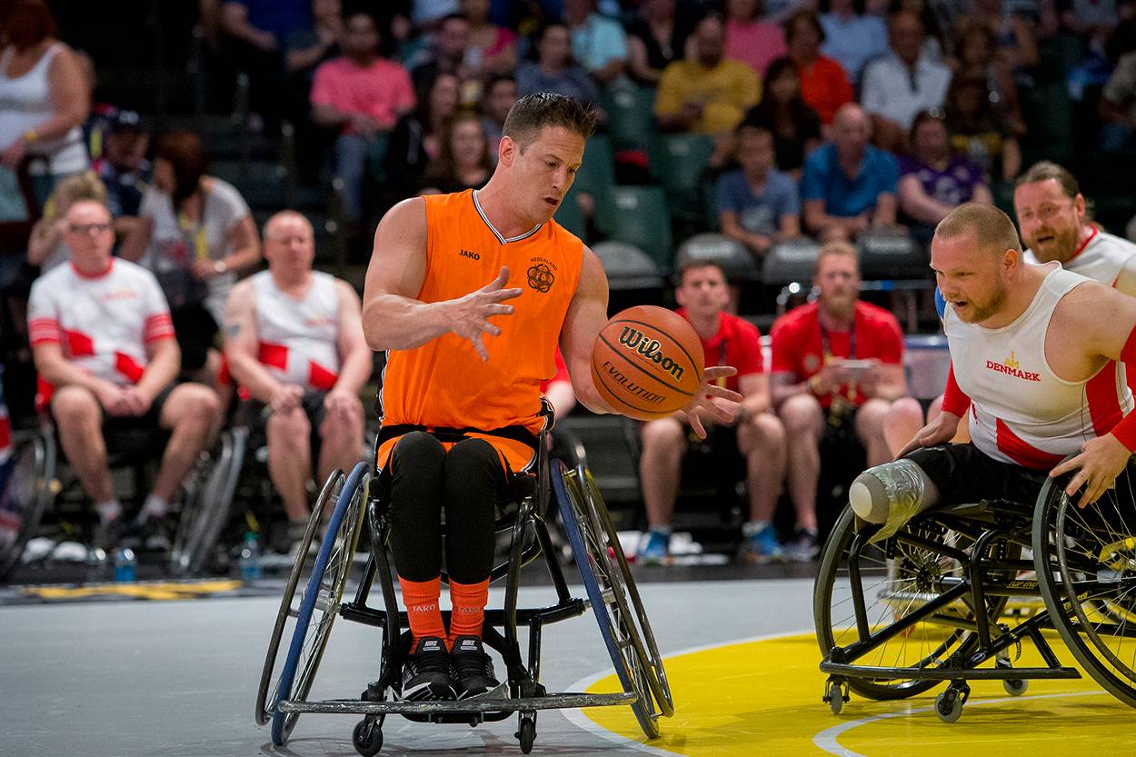 De Deense aanvoerder zet direct de toon. Invalide? Maak daar extravalide van. Hij lijkt namelijk samengesmolten met zijn rolstoel, zijn brein geprogrammeerd op 1 gedachte. Bal = basket. Als een tornado manoeuvreert hij langs de Nederlandse defensie. Schieten is scoren. Keer op keer. Pas in de 2e helft haalt Jack Pastora, de Nederlandse aanvoerder, met een snelle uitbraak de gehate 0 van het scorebord. 13-2, een lange inhaalrace wacht.