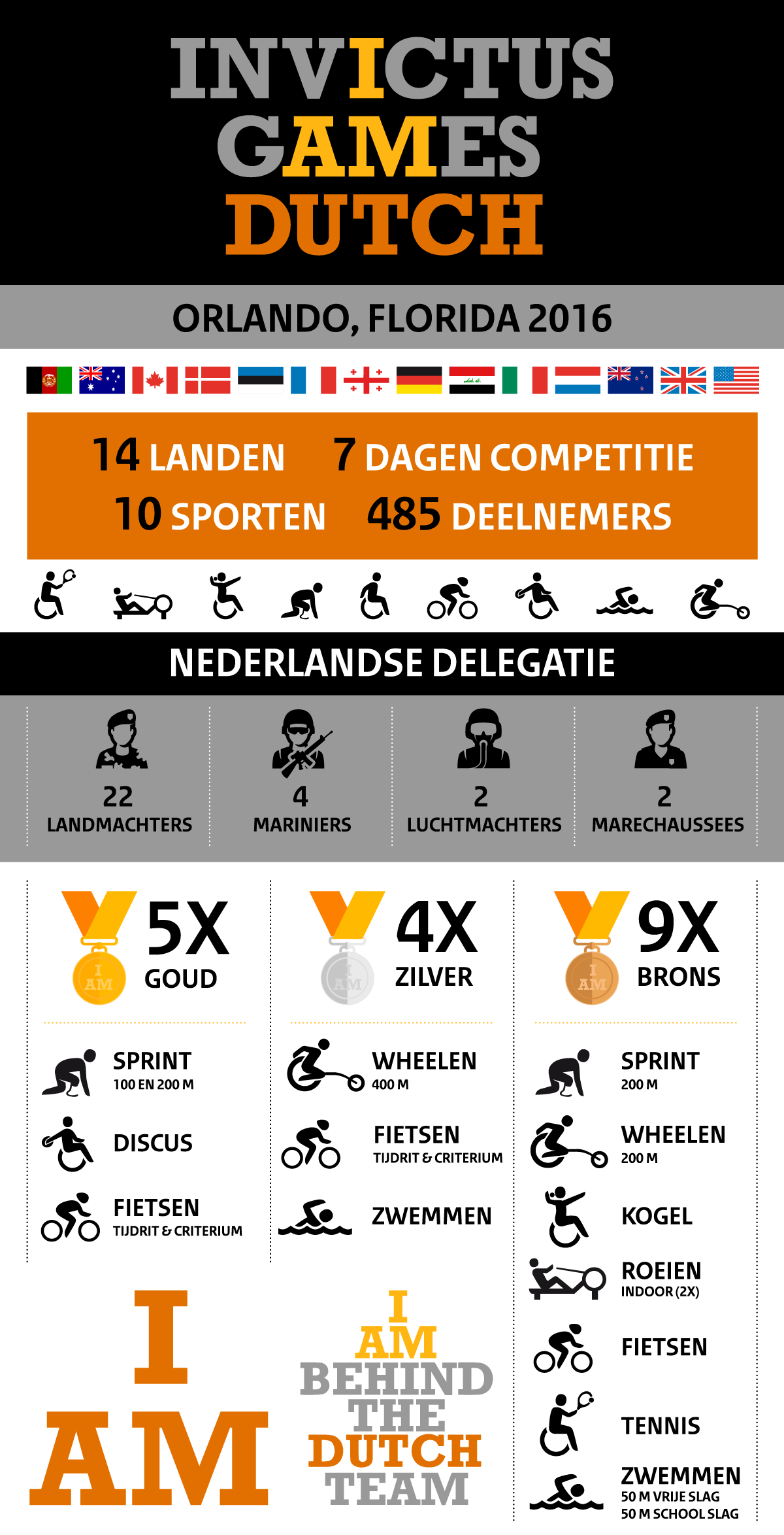 Aan de start staan. Dat is bij de Invictus Games al een overwinning op zich. In dit internationale sportevenement voor gewonde (oud-)militairen draait het niet om de prijzen. Goud is: weer kunnen meedoen, opnieuw onderdeel zijn van een team. Samen knokken. Van 6 tot en met 12 mei inspireerden de sporters elkaar en vele duizenden toeschouwers en televisiekijkers met hun strijdlust.