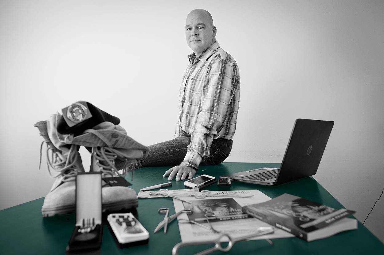 Wetend dat het zo niet langer kan, belt hij een maand later defensie. Hij wordt gelijk opgenomen. ‘Het was totale chaos in mijn hoofd. De gedachten moesten eruit maar ik wist niet hoe.’ De psycholoog raadt hem aan al zijn ervaringen op papier te zetten. Liefst van minuut tot minuut. ‘In het begin was het vreselijk moeilijk. Alles komt dan weer boven. Maar de psycholoog vond het goed wat ik geschreven had en stimuleerde mij er een boek van te maken. En dat was het beste advies wat hij me heeft gegeven. Door het schrijven en met name het herschrijven en redigeren wordt het een technische handeling. Daardoor verdwijnt de emotionele lading.’