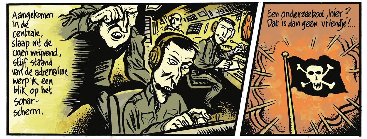 Henk-Jan Kuin is in 1999 commandant van Hr.Ms. Dolfijn als hij naar de wateren rond voormalig Joegoslavië wordt gestuurd. Daar zal de onderzeeër eventuele eenheden van Servië en Montenegro uitschakelen. Dat verhaal vertelt hij in ‘Op Missie’. Bij de productie daarvan is de kapitein-luitenant ter zee vooral onder de indruk van tekenaar Marcel Ruijters. “Hij heeft de sfeer aan boord heel goed gevangen.” Dat terwijl Ruijters nooit voet aan boord van een onderzeeër zette. “Ik heb geprobeerd dat te regelen maar toen ik dat vertelde, trok hij wit weg.”