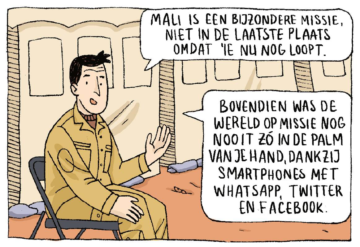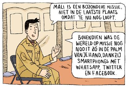 Van november 2014 tot maart 2015 is kapitein Dennis Stoppelenburg de public affairs officer in Mali. Hij maakt er raketaanvallen en opstootjes met de lokale bevolking mee, maar ook het bezoek van minister-president Mark Rutte (codenaam Metropool) en Koning Willem-Alexander (codenaam Audi). Die veelzijdigheid tijdens een uitzending wil de kapitein met zijn verhaal laten zien. Ook het contact met het thuisfront komt ruimschoots aan bod. “Daar merkte ik in Mali echt een heel groot verschil met Afghanistan. Waar ik toen met 10 man in de rij stond om naar huis te bellen, had ik nu 24/7 toegang tot sociale media. Thuis bleef natuurlijk heel ver weg, maar werd zo wel heel erg tastbaar.”
