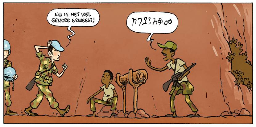 Het verhaal van (toen nog majoor) Ernst Schot speelt zich af in Eritrea, waar een VN-vredesmacht een gedemilitariseerd grensgebied bewaakt. De marinier krijgt opdracht samen met de Canadezen een verboden regio binnen te gaan, maar Eritreeërs houden de groep tegen. “Wat mijn verhaal denk ik laat zien, is dat je als militair soms tegen moeilijke beslissingen aanloopt. We hadden gewoon kunnen doorzetten, volgens het mandaat mocht dat. Maar dan liepen we het risico de relatie met de lokale politiek overboord te gooien.”