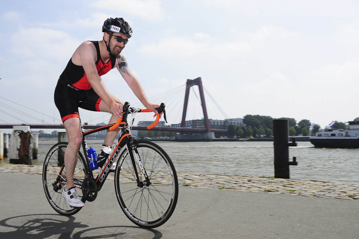 Op 24 juli maakte hij zijn debuut op de triatlon. Geflankeerd door Wouter. “We zwommen zij aan zij. Ik keek hem recht in het gezicht en we moesten allebei breeduit lachen.” Het was een achtbaan van emoties, 750 meter zwemmen, 20 kilometer fietsen en 5 kilometer lopen lang. Op het eind van de loopronde zag hij het Erasmus Ziekenhuis.