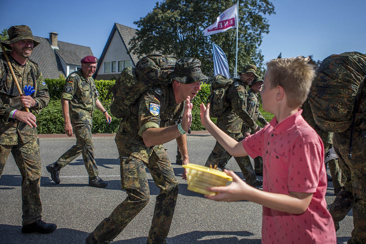 Bijna 5.500 militairen uit 31 landen trotseerden de elementen in de omgeving van Nijmegen. Ze kregen ook enkele stortbuien te verduren, maar ze buffelden onvermoeibaar door. De detachementen en individuele lopers namen deel aan een bijzondere editie; de grootste meerdaagse wandelprestatietocht ter wereld vond voor de 100ste keer plaats. De allereerste editie was in 1909 met ruim 300 lopers. Toen deden bijna uitsluitend militairen mee.