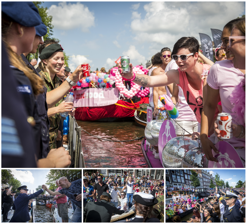 Ondanks dat er nog een hoop te winnen valt, is de Nederlandse krijgsmacht wereldwijd het verst op het gebied van LHBTI-emancipatie. Enkele jaren geleden adviseerde de SHK zelfs op verzoek de Amerikaanse krijgsmacht over de sociale en juridische omgang met LHBTI-personeel. Kort daarop schafte de grootmacht haar ‘don’t ask, don’t tell’-beleid af en richtte het LHBTI-netwerk OutServe op. Een aantal leden daarvan voer afgelopen zaterdag mee over de Amsterdamse grachten.