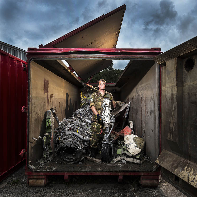 “Prio 1 voor een vliegtuigberger is natuurlijk een actuele crash. Zoals onlangs bij de Luchtmachtdagen die Zwitserse kist die naar beneden kwam. Vlieger gelukkig ongedeerd aan zijn parachute geland in een kas, het vliegtuig in duizenden stukken in de bodem van een vijver. Je probeert dan zo snel en goed mogelijk te bergen, de rommel op te ruimen en vervuiling van de bodem door brandstof- en olielekkage in te dammen. Al duurde het toch nog even voor we konden beginnen, want er was wat gesteggel over wie de kosten voor rekening ging nemen...