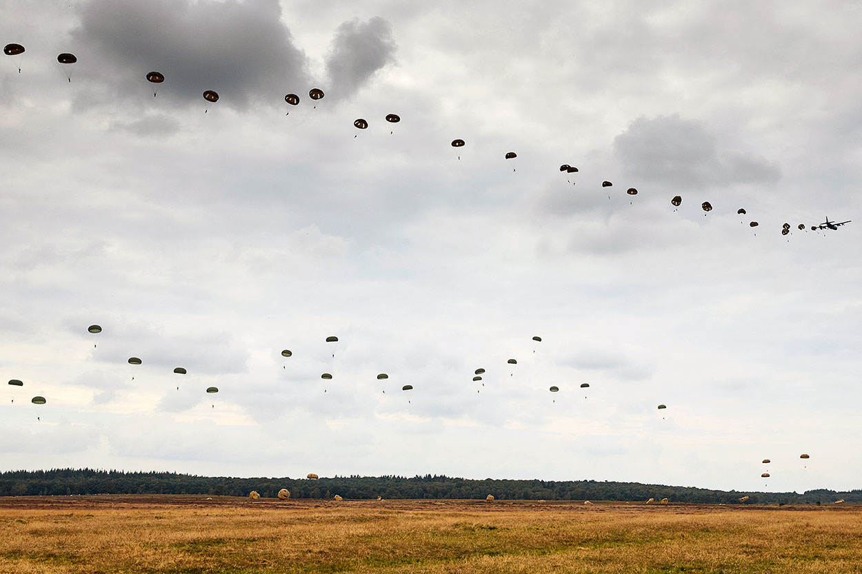 September 2016: honderden parachutisten dwarrelen naar de grond, net als hun airbornebroeders tijdens Market Garden in 1944. Een verhaal over herdenken en de relevantie van het luchtlandingswapen.