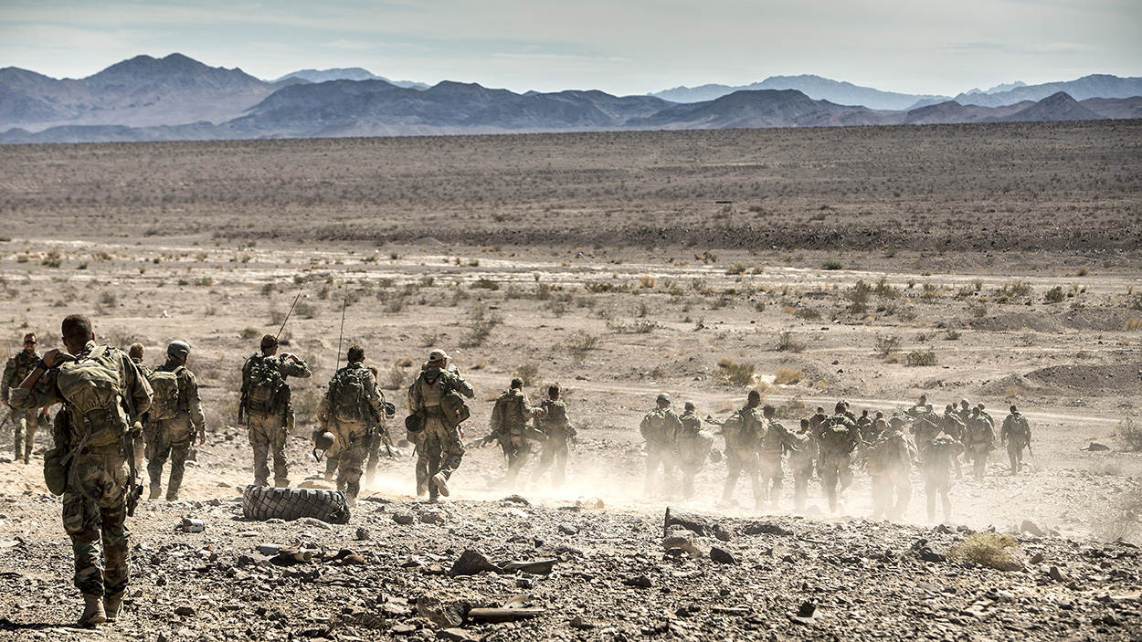 Mariniers bikkelen in Mojavewoestijn Californië