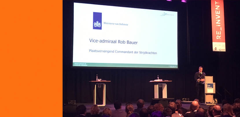 “Defensie en het bedrijfsleven hebben elkaar hard nodig. Nu misschien wel meer dan ooit." Aldus de plaatsvervangend Commandant der Strijdkrachten vice-admiraal Rob Bauer tegen honderden jonge managers en ondernemers die vorige week samenkwamen op het Jong Management-congres Re_Invent in Rotterdam. Gepraat werd onder meer over hoe bedrijven en organisaties kunnen bijdragen aan de economische ontwikkeling van landen waar ook militairen actief zijn. Ook tipte Bauer het onderwerp innovatie aan: “Overheden of krijgsmachten hebben geen middelen meer om breed revolutionaire technologieën te ontdekken en te ontwikkelen. Daarom zijn we erg afhankelijk van andere organisaties, bedrijven en kennisinstellingen.”
